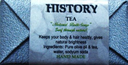 Все виды мыла, произведённые History Natural Soaps, являются мылом ручной работы и содержат только натуральные компоненты. Компоненты чая используется против зуда, ревматизма и для предотвращения синих кругов под глазами. Люди предпочитают этот продукт, потому что его действие производит расслабляющий эффект на кожу. Чай - наиболее потребляемое растение на Востоке.Чайное мыло впервые было произведено в Китае 200 лет назад, и оно стало самым популярным мылом из-за его потрясающего воздействя на кожу. Из Китая чайное мыло распространилось по всему миру.Чай обычно используется для того, чтобы делать компресс утомленным глазам и освежить кожу. Вы обнаружите лечебный эффект чая в нашем мыле. Использование этого продукта день за днём придаст необычайную свежесть вашей коже.